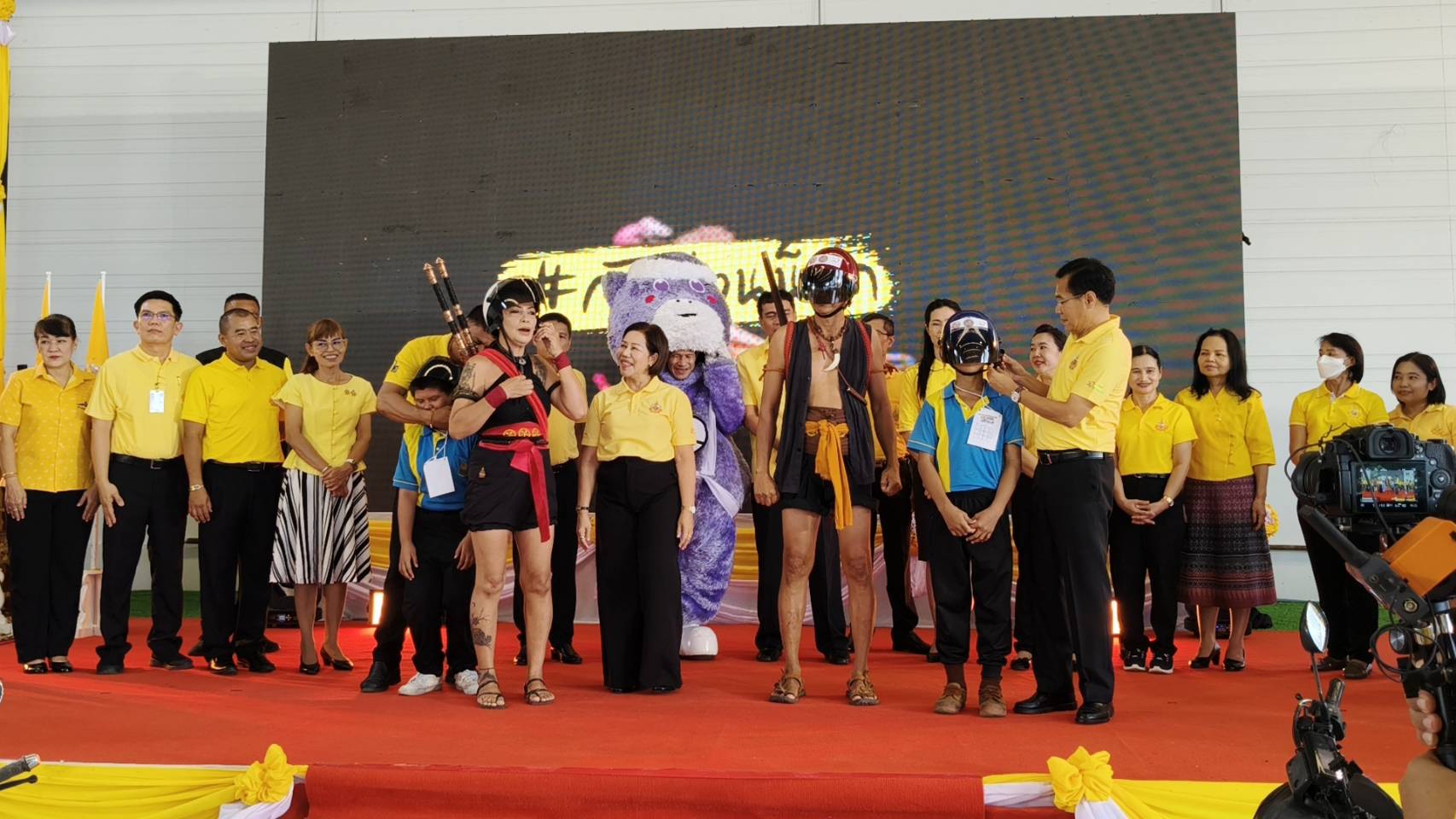 ขนส่งสิงห์บุรีจัดงาน'คมนาคมปลอดภัยฯ' ตกใจ! จู่ๆมีนักรบบางระจันแว๊นรถผ่าน