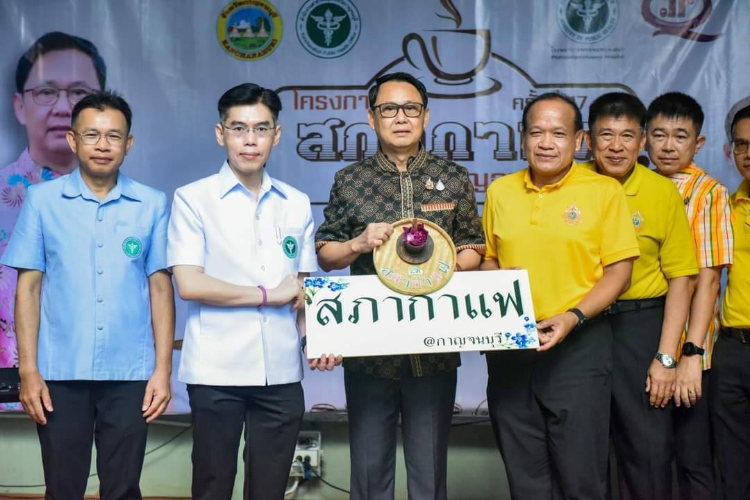 กาญจนบุรี-ผวจ.กาญจนบุรี เป็น ปธ.ร่วมหน่วยงานสังกัดกระทรวงสาธารณสุข เป็นเจ้าภาพสภากาแฟ ครั้งที่ 17 นำบริการตรวจสุขภาพและฉ...
