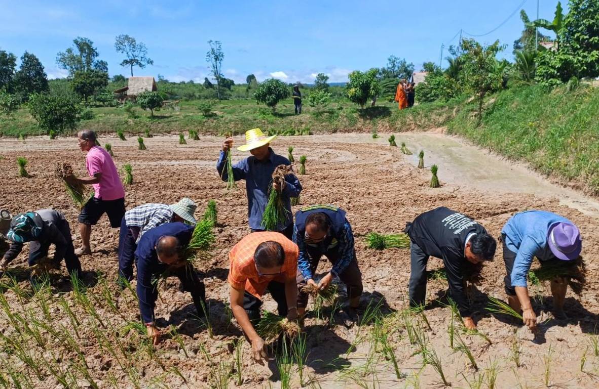 ศรีสะเกษ-นายอำเภอขุนหาญเปิดงานประเพณีลงแขกดำนารักษาวัฒนธรรมประเพณีวิถีพื้นบ้านไทยอีสาน