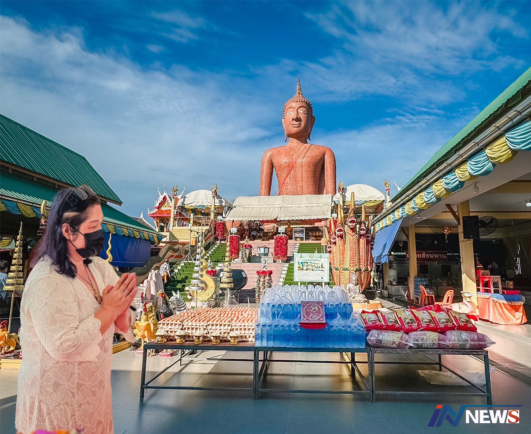 นครปฐม-แม่นักแสดงดัง ไบร์ท วชิรวิชญ์ พร้อมญาติ นำไข่ ประทัด ข้าวสาร น้ำดื่ม ถวายแก้บนหลวงพ่อสมหวัง หลังขอพรแล้วได้โชคใหญ...