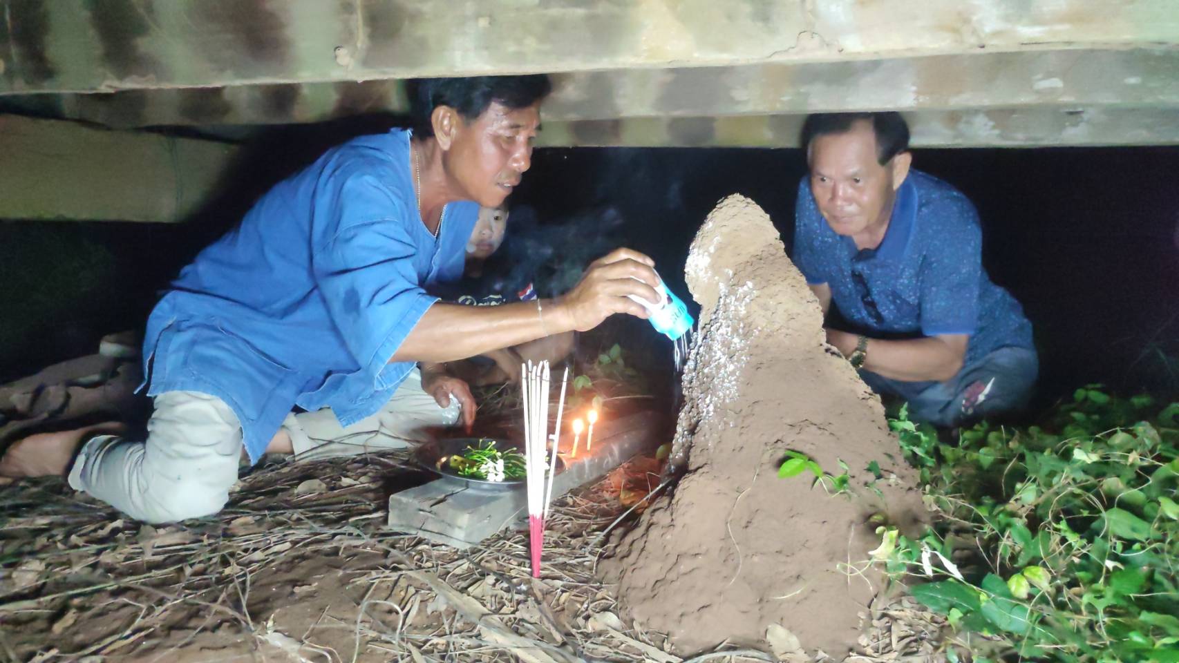 คอหวยแห่ขอเลขจอมปลวกคล้ายปลัดขิก ด้านชาวบ้านเชื่อมาให้โชคลาภ