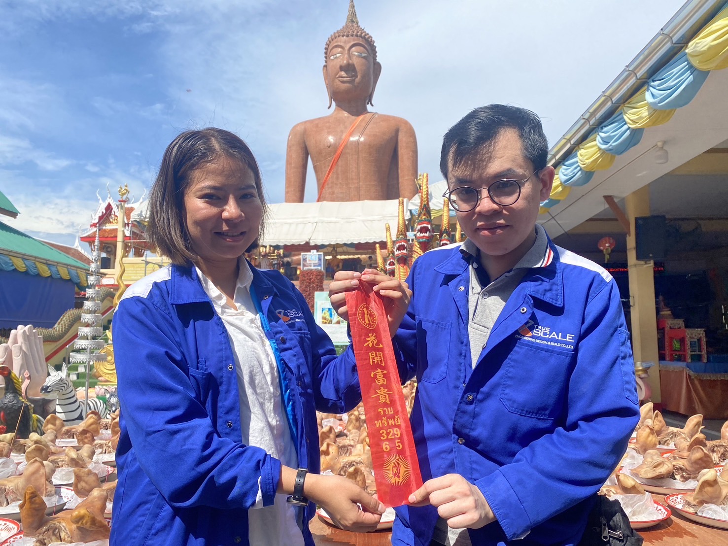 นครปฐม-สาวเมืองกาญจน์ นำหัวหมู102หัว แก้บนหลวงพ่อสมหวังหลังได้รับงานเขียนแบบก่อสร้างงานใหญ่โครงการรัฐ