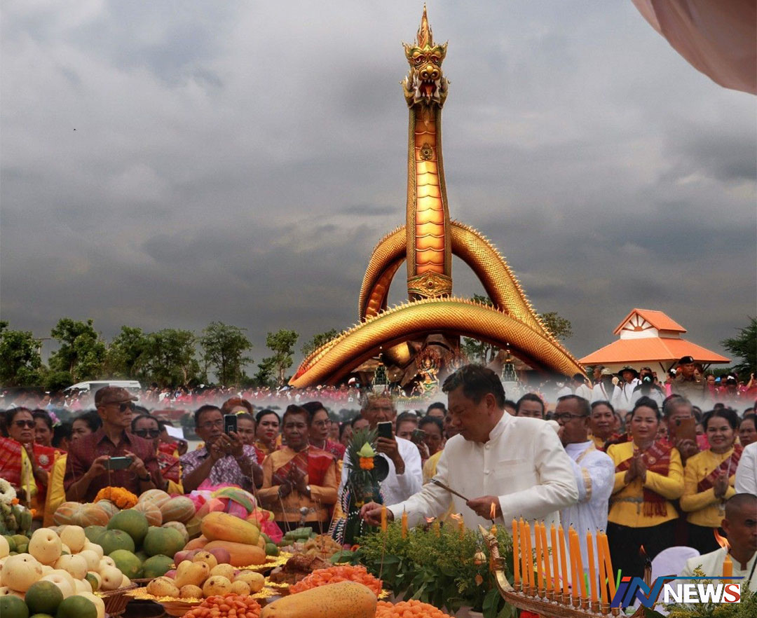 ร้อยเอ็ดจัดพิธีบวงสรวงสมโภชองค์พญา ศรีสุทโธนาคราชที่อ่างเก็บน้ำธวัชชัย
