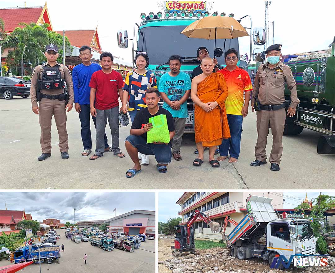 ชาวรถบรรทุก6ล้อปากน้ำรกว่า40คันร่วม ขน'อิฐ-หิน-ทราย'ไปถวายวัดทำเขื่อน