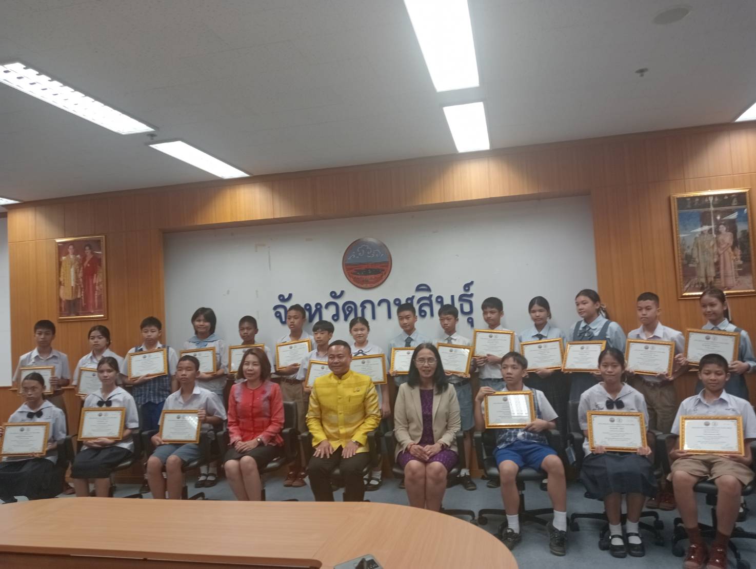 คนเก่งกาฬสินธุ์รองผู้ว่าฯมอบเกียรติบัตร นร.มีผลทดสอบทางการศึกษาเต็ม100