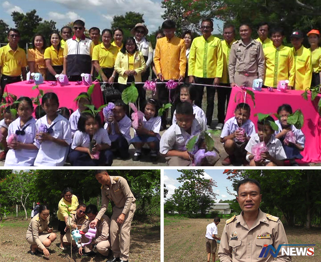 นร.บ้านเนินมะค่าไอเดียเก๋นำต้นสักทอง ทำพิธีไหว้ครูพร้อมร่วมกันปลูกเพิ่มสีเขียว
