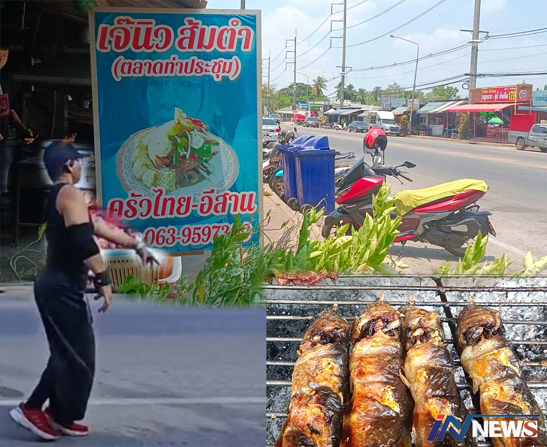 ปราจีนบุรี -29042567- ข่าว - ร้านส้มตำเต้นโชว์สตํปคลายร้อนหน้าร้านเรียกลูกค้า