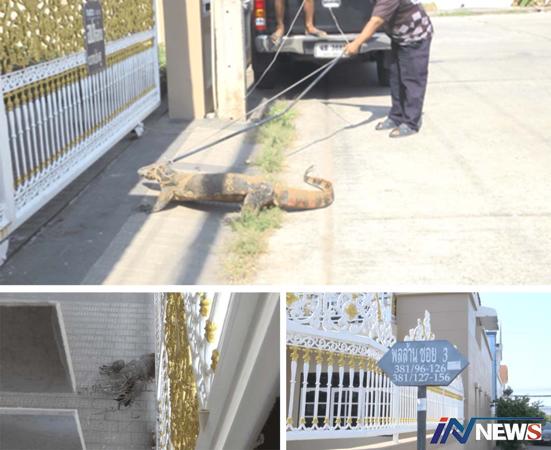 นครราชสีมา-สุดระทึกพบตัวเงิน-ตัวทองขนาดใหญ่ที่มีน้ำหนักตัวกว่า 30-50 กิโลกรัม นอนติดใต้ประตูในหมู่บ้านพลล้านวิลล่า เลขที...