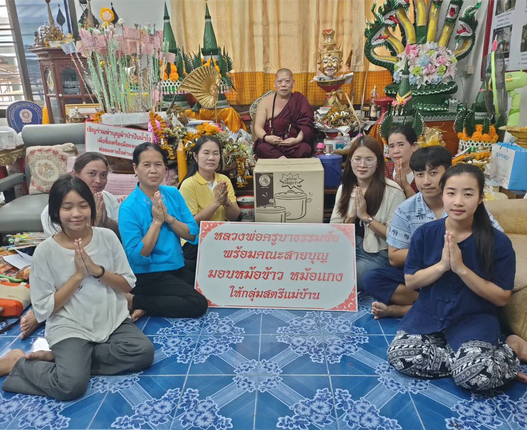 น่าน-องค์บุญแห่งล้านนา ครูบาธรรมชัย เจ้าอาวาสวัดศรีพันต้น แจกหม้อข้าวหม้อแกง ให้แก่สตรีแม่บ้านเพื่อช่วยงานสังคม