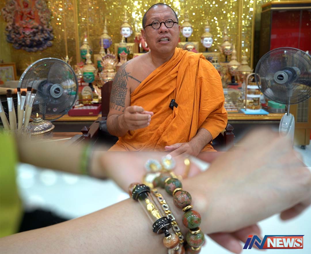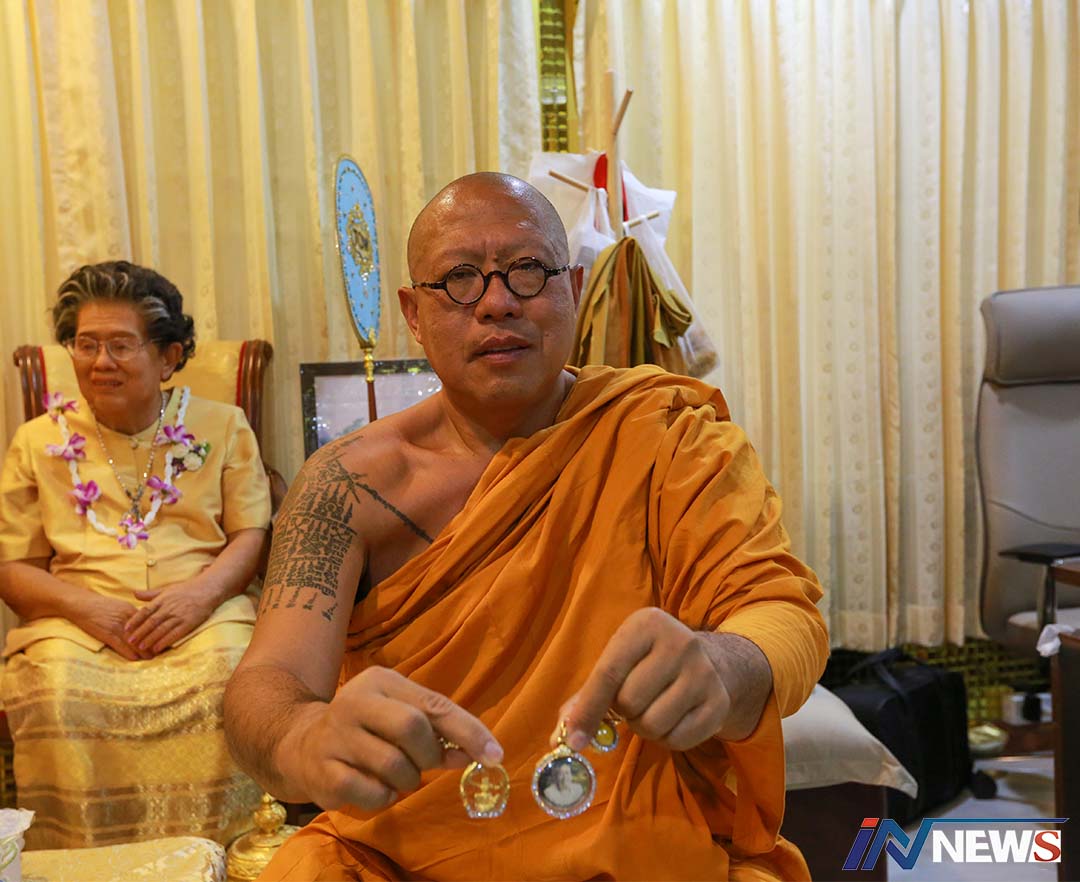 นครปฐม-หลวงพี่น้ำฝน โชว์ของดีติดตัว เป็นอัฐิล็อกเก็ท ภาพแม่ และหนุมานเชิญธงปี 47 ตัวแทนความกตัญญูหลวงพ่อพูล บรมครู หลังป...