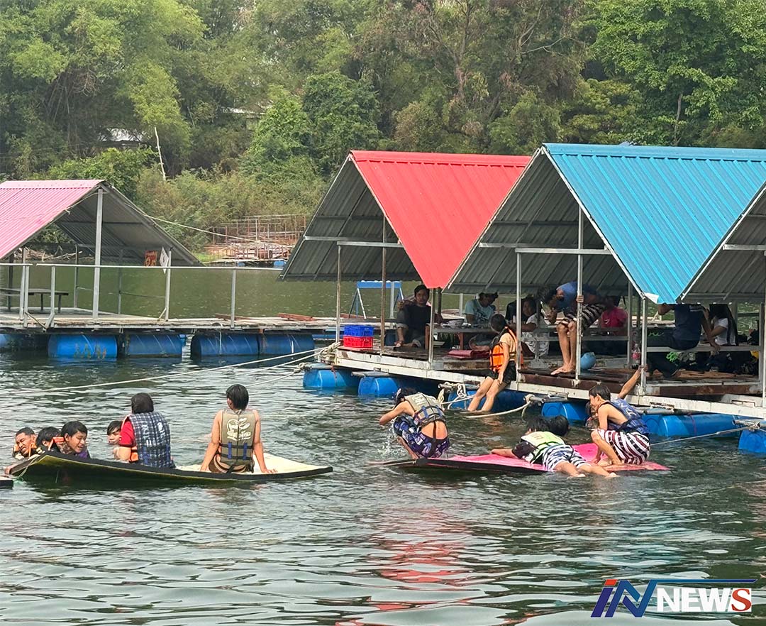 ศรีสะเกษ-แดดเผาโลกนักท่องเที่ยวแห่ไปเล่นน้ำคลายร้อนที่หาดบ้านแก้ง นั่งพักผ่อนนอนเล่นบนแพในแม่น้ำมูลกินส้มตำ ต้มยำปลา กุ้...