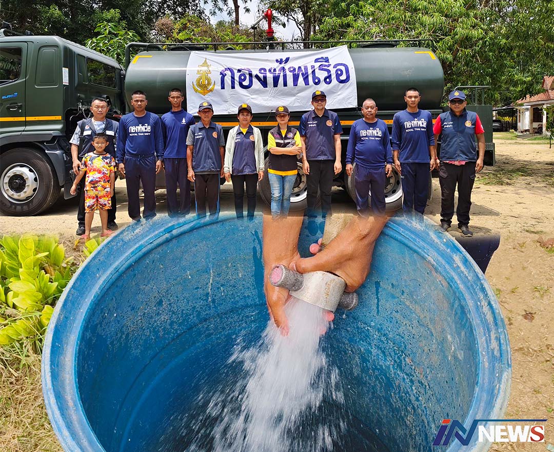 ฐานทัพเรือพังงาทัพเรือภาค3นำรถขนน้ำ แจกจ่ายช่วยชาวบ้านเบรรเทาน้ำแล้ง