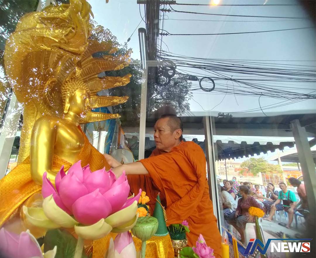 ทวีศักดิ์/ลพบุรี-ประชาชนชุมชนเทศบาลเมืองเขาสามยอด 5 สรงน้ำพระที่สร้างพระพุทธรูปกลางหมู่บ้านเพื่อเป็นที่ยึดเหนี่ยวจิตใจขอ...