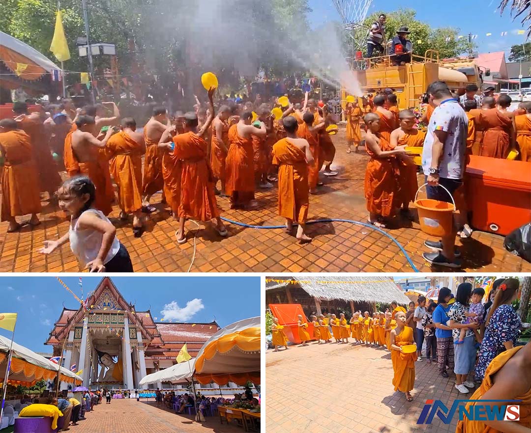 วัดหาดใหญ่ในจัดเต็มนำรถดับเพลิง2คัน ฉีดน้ำให้เณรเล่นสงกรานต์สนุกสนาน