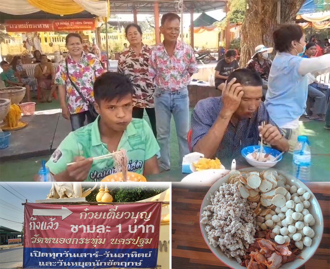 นครปฐม-วัดหนองกระทุ่มจัดแข่งขันกินก๋วยเตี๋ยวชามโครตยักษ์เส้นอย่างเดียว 10 กิโลต่อ 1 ชามรวม 25 กิโลต่อชามใช้เวลา 30 นาที