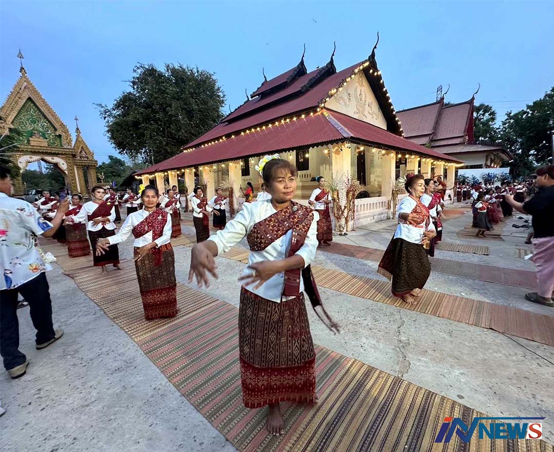 กาฬสินธุ์-คณะนางรำชาวตำบลนาจารย์ อ.เมือง จ.กาฬสินธุ์ น้อมใจรำถวายเป็นพุทธบูชาขอพรสิ่งศักดิ์สิทธิ์เสริมสิริมงคลในเทศกาลสง...
