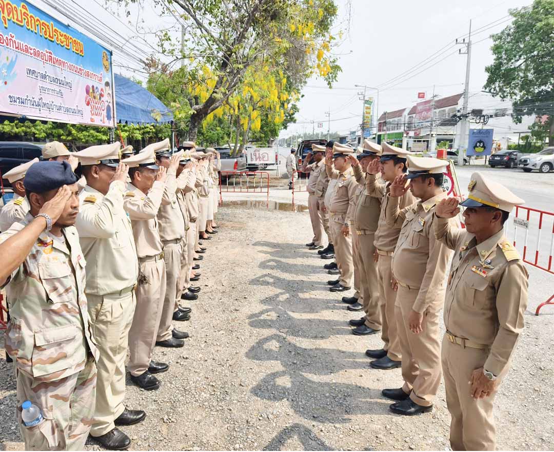 นอภ.เมืองลพบุรีไม่พักแม้เป็นวันสงกราต์ ตั้งจุดบริการประชาชนป้องกัน-ลดอุบัติ