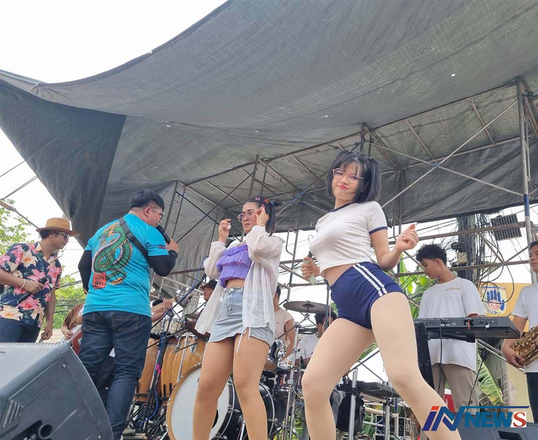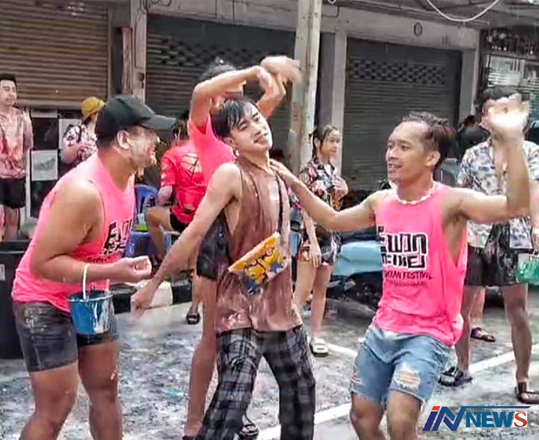 บรรยากาศสงกรานต์นครนายกสุดคึกคัก หนุ่ม-สาวเดินปะแป้งเปิดเพลงเต้นมันส์