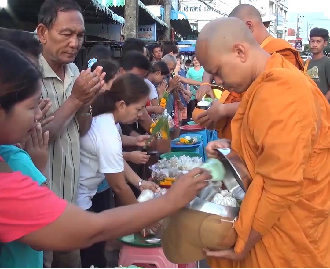 สงขลา-ชาวสงขลา นำอาหารหวานคาวมาทำบุญตักบาตรพระสงฆ์เนื่องในวันครอบครัว เพื่อความเป็นสิริมงคลแก่ตนเองและครอบครัว หลังลูกหล...