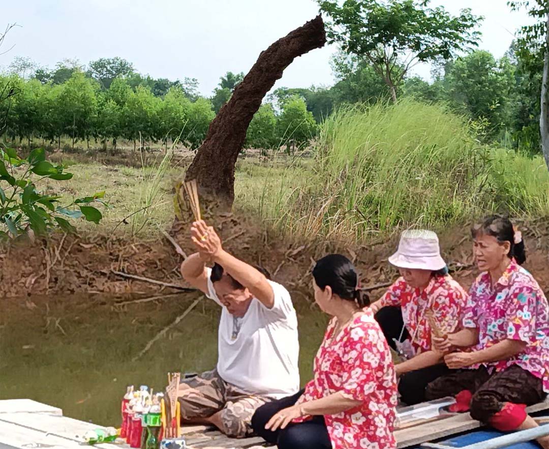 ช่วงสงกรานต์คอหวยแห่ขอโชคลาภส่อง เลขเด็ดปู่ย่าพญานาคกลางทุ่งนา