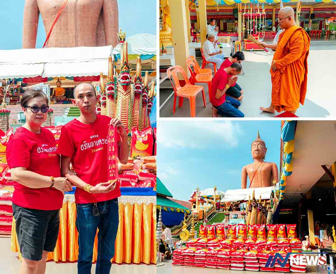 เจ๊เขียงหมูตลาดศรีเมืองราชบุรีนำข้าวสาร แก้บนหลวงพ่อสมหวังหลังรวย12ล.
