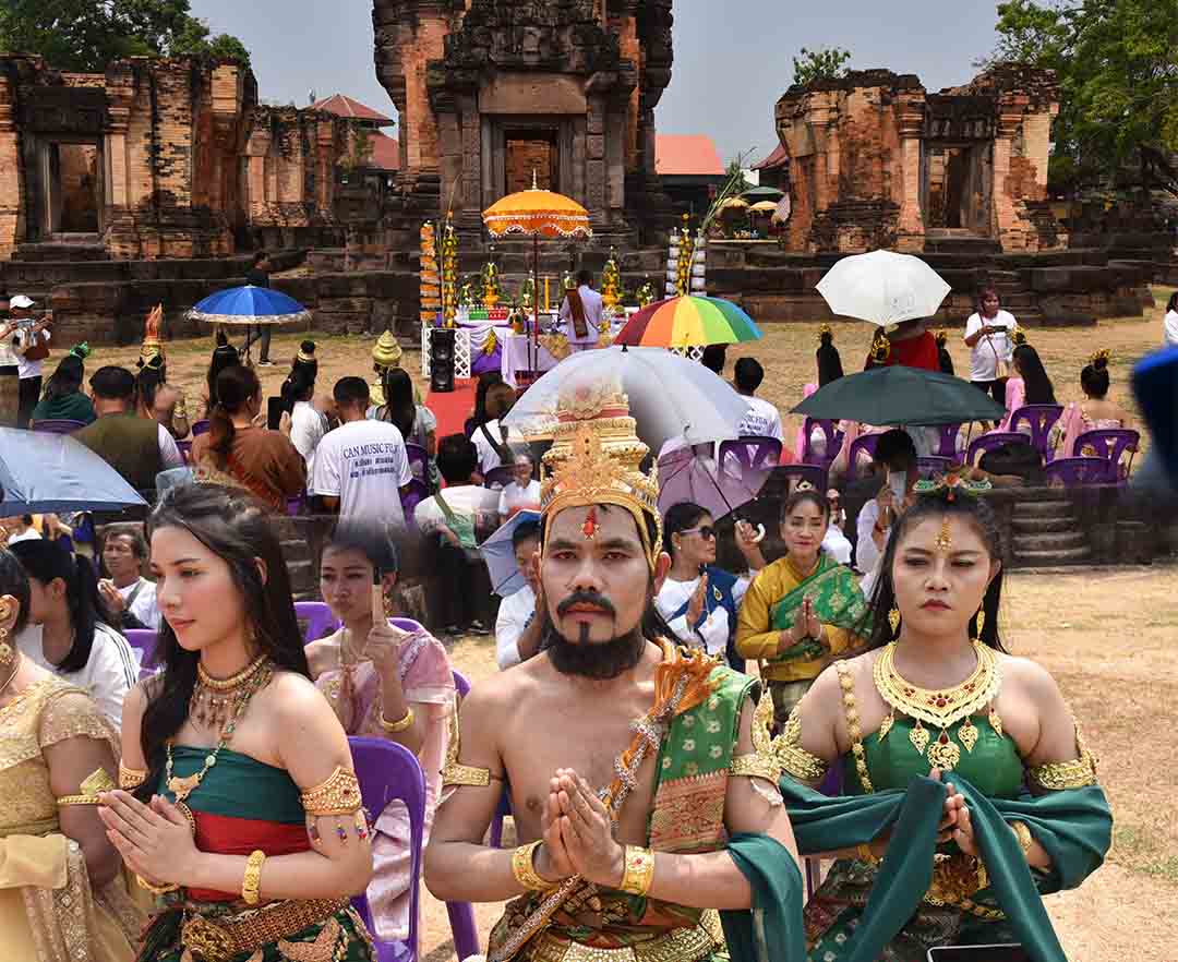 กาญจนบุรี-คอหวย ! ทั่วสารทิศแห่ส่องขันน้ำมนต์เจ้าคณะจังหวัดกาญจนบุรีในพิธีบวงสรวงงานย้อนรอยอดีตตำนานพระปรางค์เขารักษ์