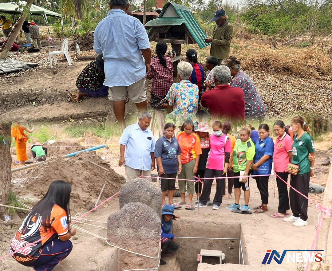 คอหวยชาวคูเมืองแตกตื่นแห่ส่องเลขเด็ด หลังขุดพบโบราณสถานยุคธาราวดี