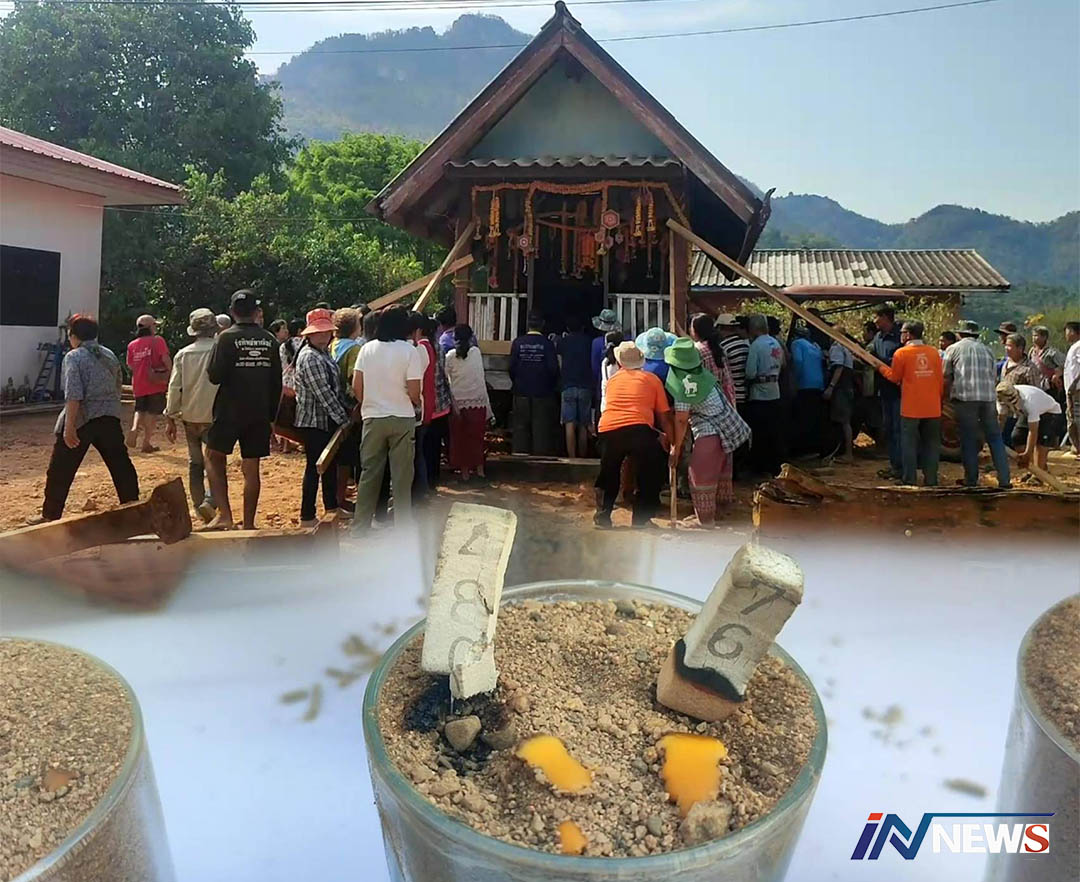 คอหวยวังโป่งแห่ส่องเลขเด็ดบวงสรวง เคลื่อนย้ายศาลพ่อปู่หลังเก่าทำใหม่