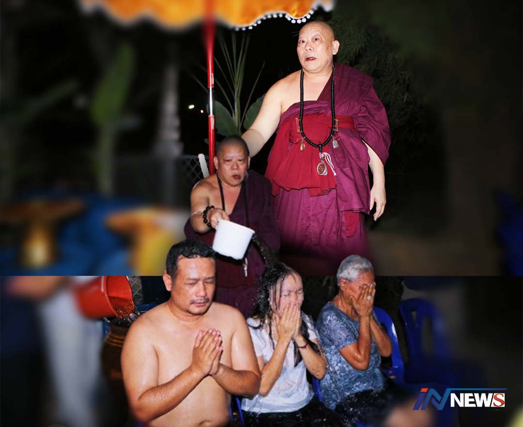 ปทุมธานี -“ครูบาธรรมชัย” องค์บุญแห่งเมืองล้านนาจัดพิธีอาบน้ำมนต์กลางแสงจันทร์แบบล้านนา ศิษยานุศิษย์นับพันคนร...