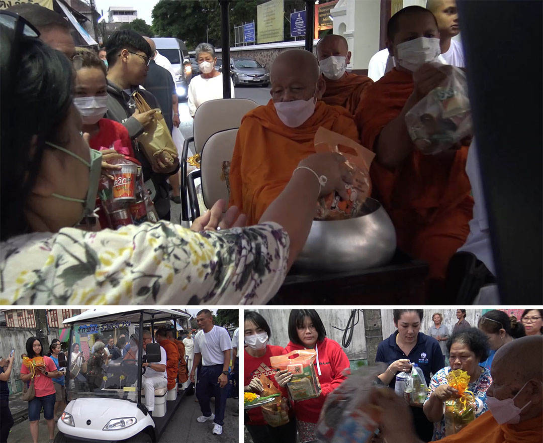 เจ้าอว.วัดมัชฒิมาฯนั่งรถไฟฟ้าบิณฑบาต นำสิ่งของให้ผู้ด้อยโอกาสในสงขลา