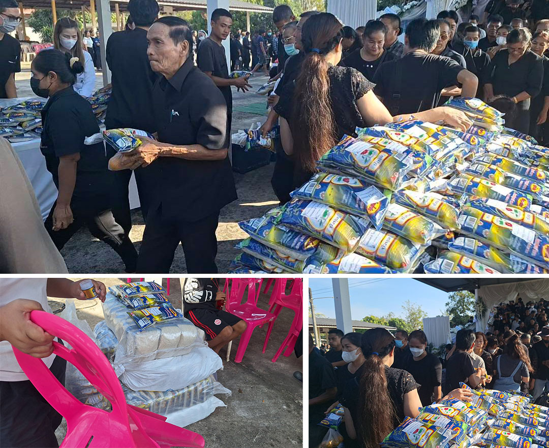 ปราจีนบุรี-แจกข้าวสารงานศพ1ตันแทนของชำร่วยญาติและลูกหลานผู้เสียชีวิต ทำบุญใหญ่แจกข้าวสารผู้ที่มาร่วมงานฌาปณกิจ จำนวน 1 ต...