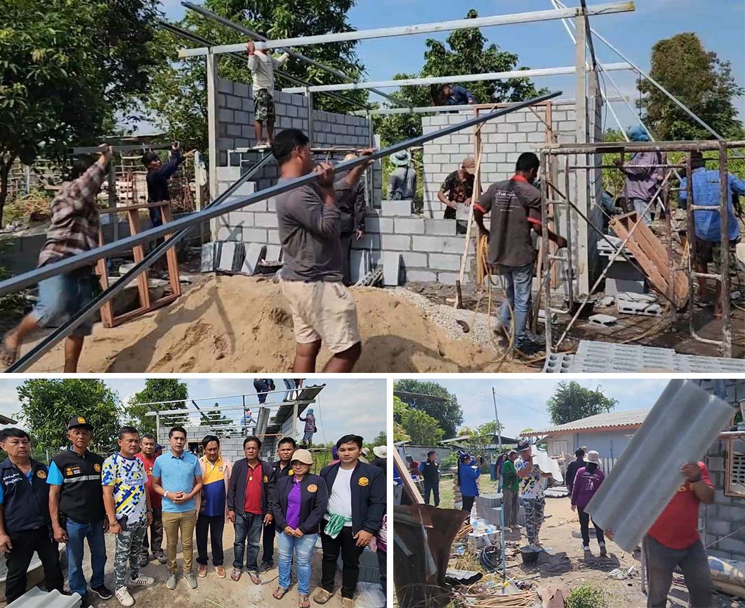 คนกาญจน์ฯใจบุญลงแขกสร้างบ้านใหม่ ให้'น้องหญิง-น้องก๊อก'พ้นความลำบาก
