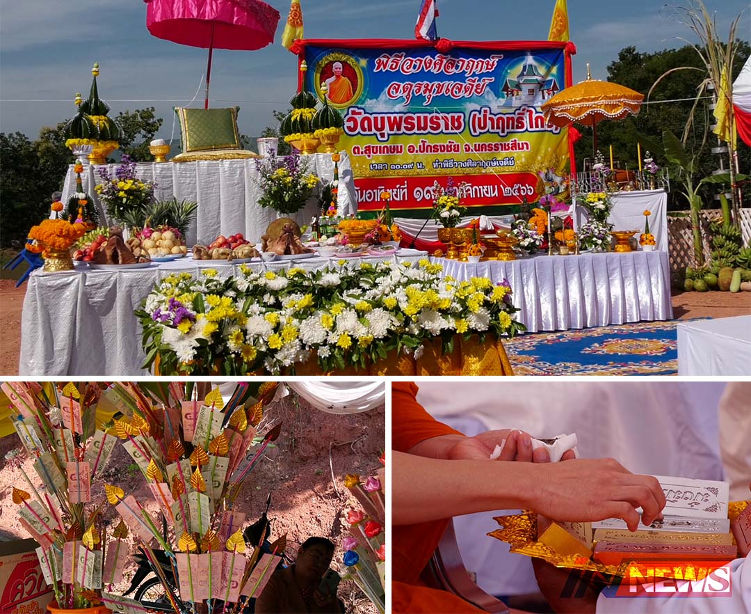 คอหวยปักธงชัยแห่ส่องเลขเด็ดไม้มงคล วางศิลาฤกษ์จตุรมุขเจดีย์วัดป่าฤทธิไกร