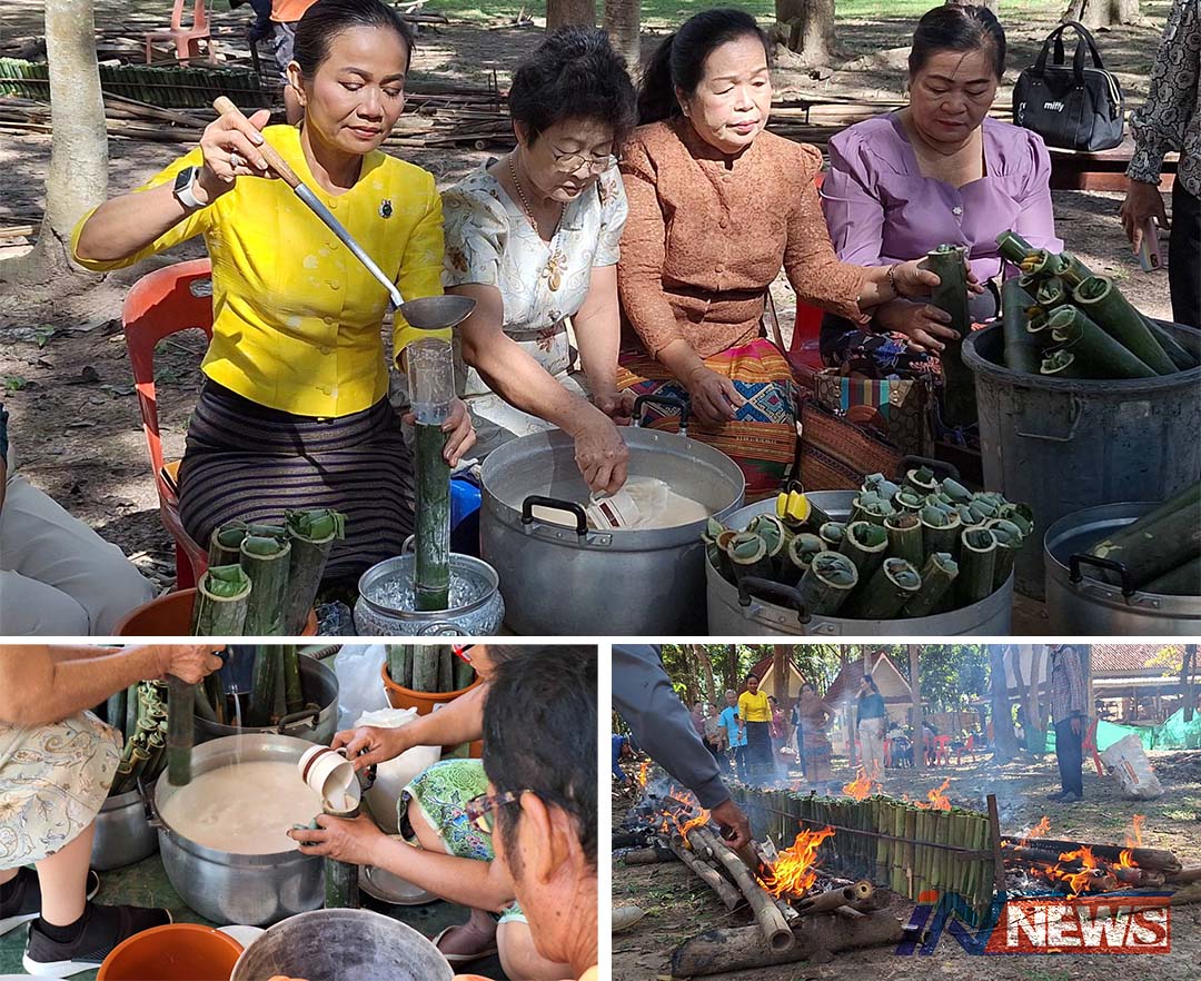 ปราจีนบุรี-งานบุญใหญ่ กฐินสามัคคี วัดบ่อทองรังสรรค์ ญาติโยมสูงวัยร่วมใจกันเผาข้าวหลาม 1000 กระบอกแจกญาติโยมที่มาร่วมงาน ...