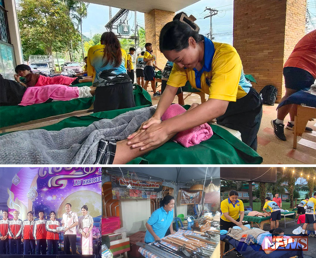น.ศ.ม.กีฬากระบี่ตั้งเตียงนวดนักท่องเที่ยว เที่ยวงานลอยกระทงฝึกงานภาคสนาม