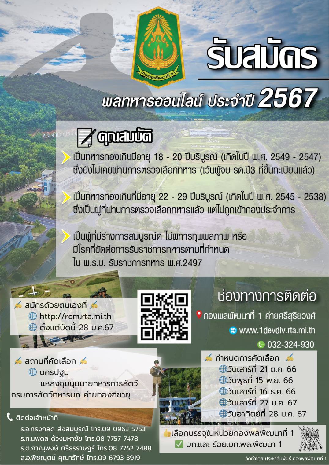 นครปฐม-กองพลพัฒนาที่ 1 ขอเชิญชวนน้องๆ ทหารกองเกินที่มีอายุ 18 – 20 ปีบริบูรณ์ (เกิดปี พ.ศ. 2547 – 2549...