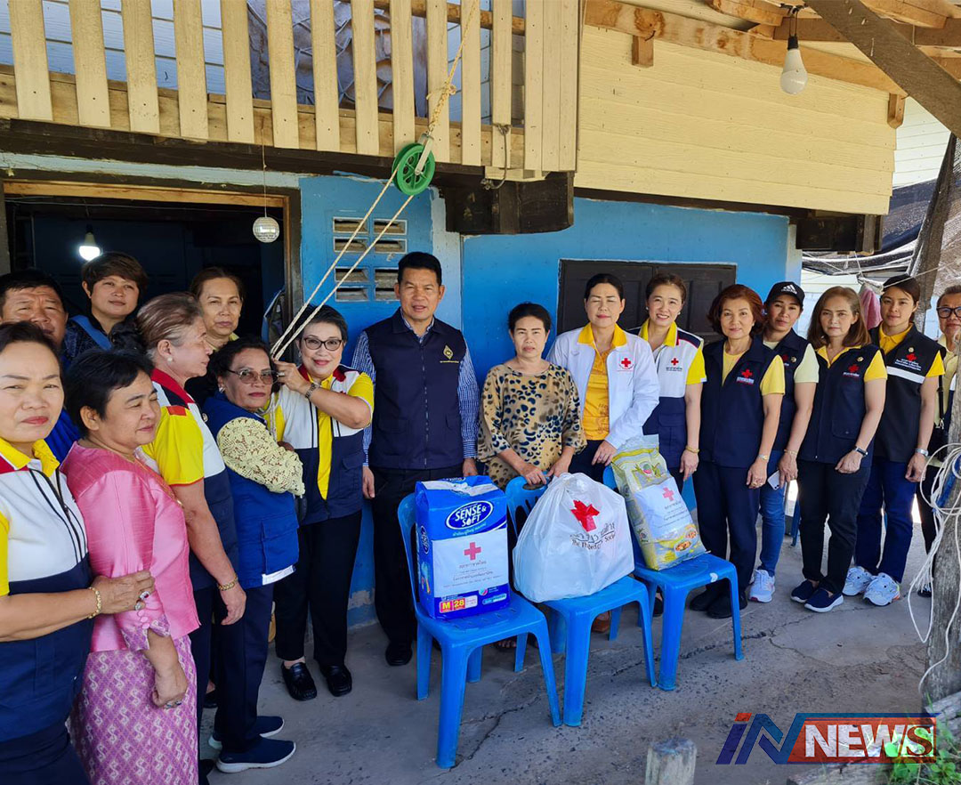 นอภ.พัฒนานิคมควงกิ่งกาชาดร่วมกันนำ ถุงยังชีพมอบไห้ผู้ป่วยติดเตียง
