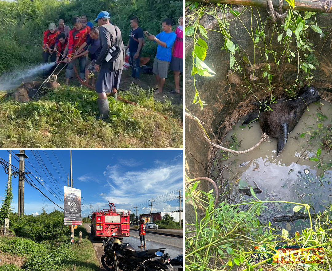 แห่ช่วยควาย'เจ้าสุข'กินเพลินจนตกบ่อ ชาวโพธิ์งาม-กู้ภัย-ปภ.งัดทุกวิธีช่วยได้ทัน