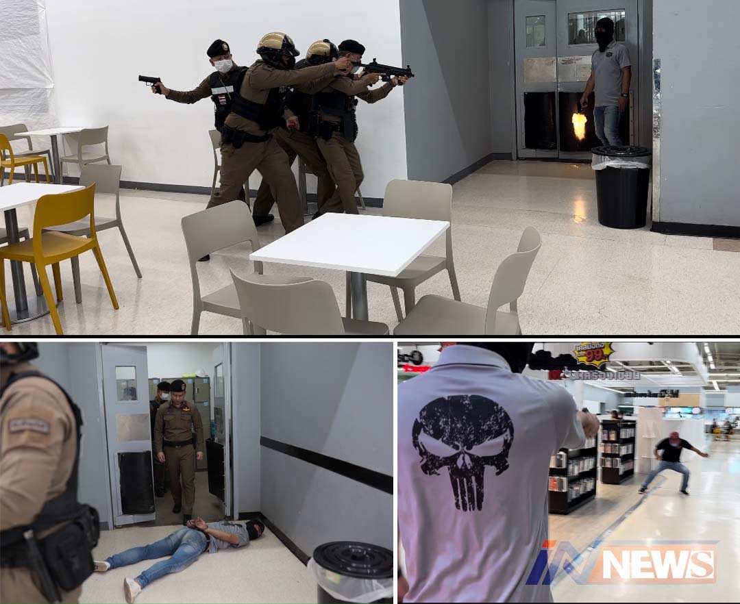 สภ.ศรีมหาโพธิระดมซ้อมแผนเผชิญเหตุ กราดยิงห้างดังย่านนิคมอุตสาหกรรม