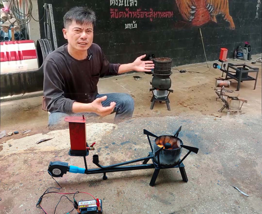 หนุ่มใหญ่กุดหว้าไอเดียเจ๋งไม่ง้อแก๊สแพง ผลิตเตาหุงต้มใช้น้ำมันเก่าลดค่าใช้จ่าย
