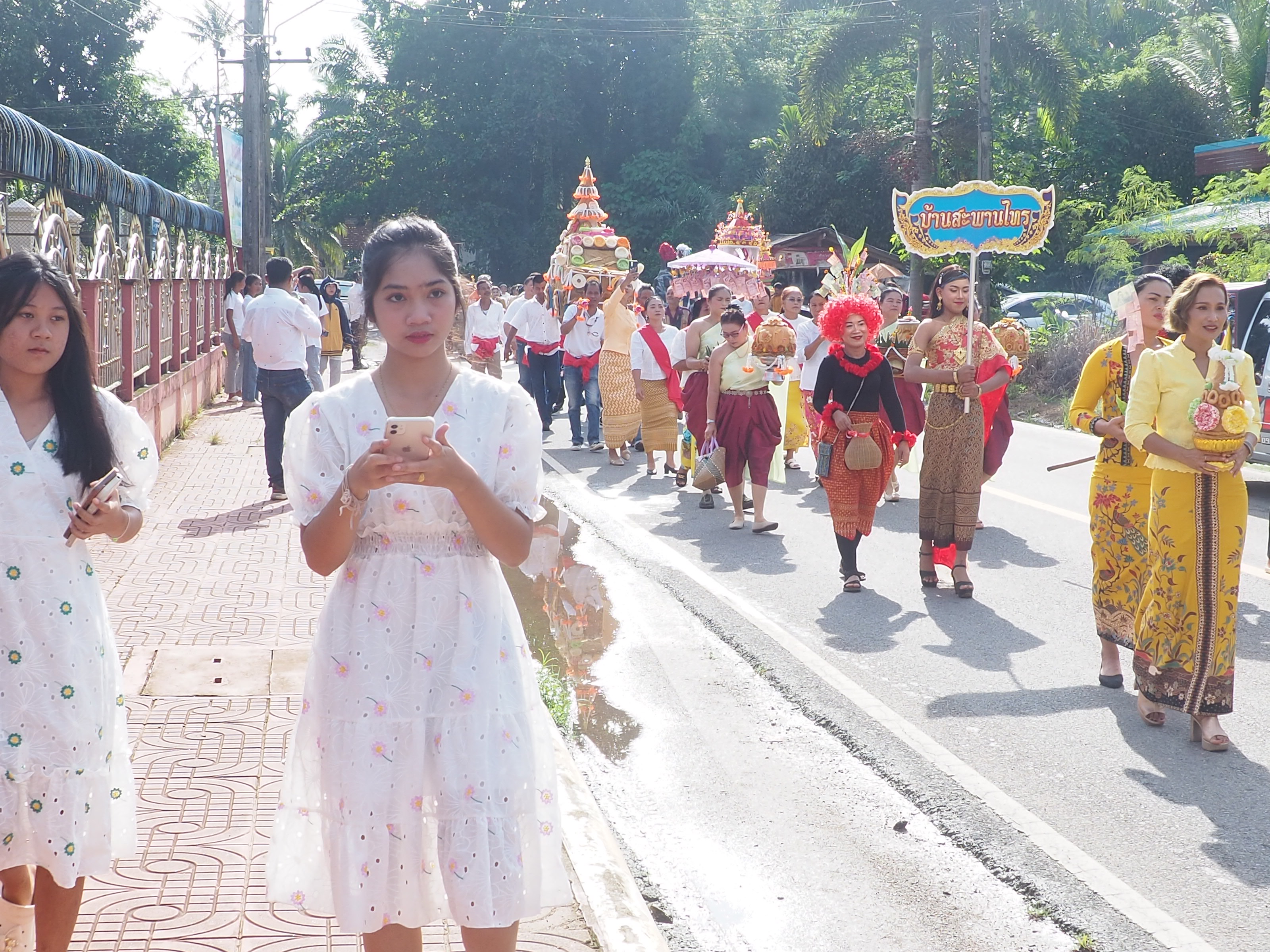 คนพังงาร่วมอนุรักษ์ประเพณีแห่ช่อเข้าวัด ในงานทำบุญวันสารทเดือนสิบวัดถ่ำ