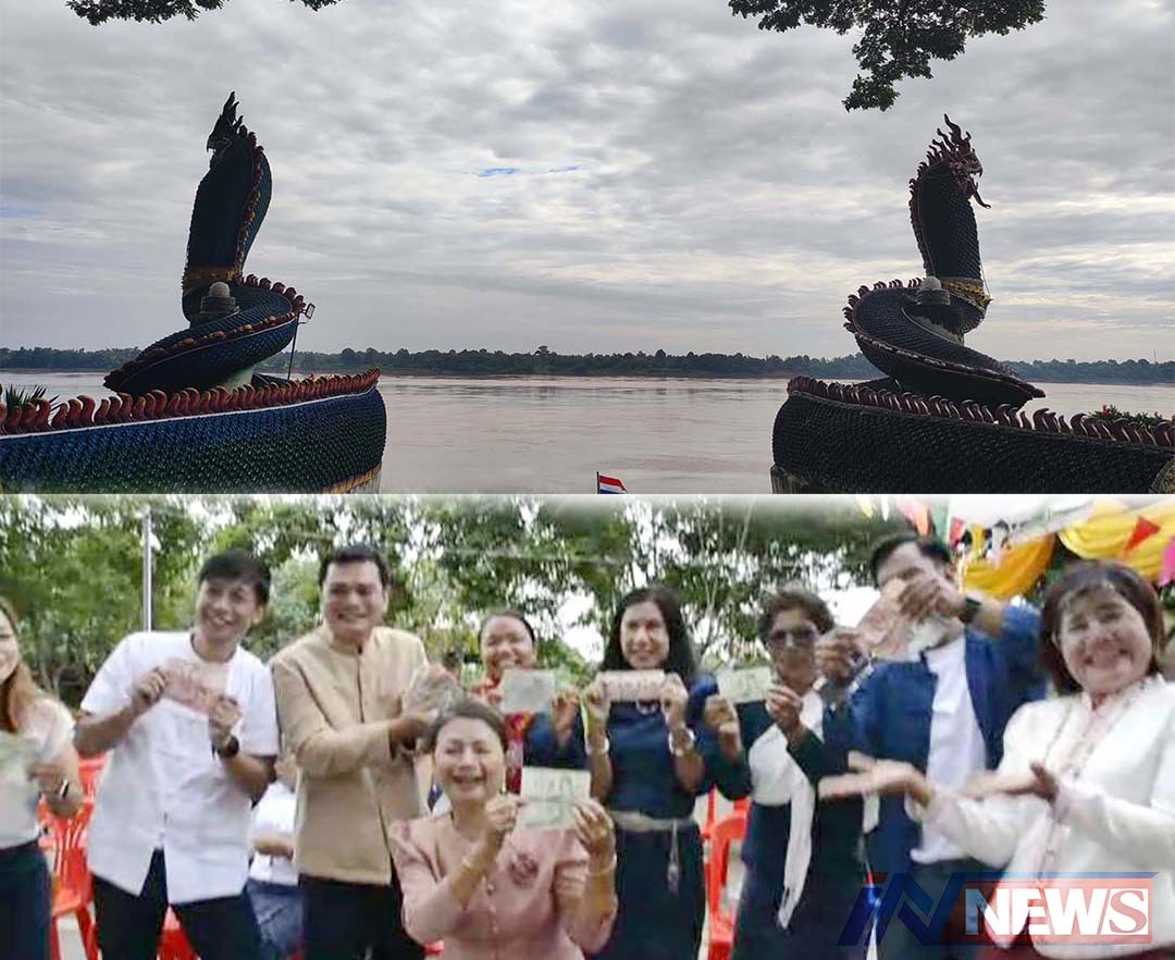 ชาวมุกฯแห่ส่องเลขเด็ดธนบัตรโปรยทาน บวงสรวงพญานาคที่ริมโขง'ดอนตาล'