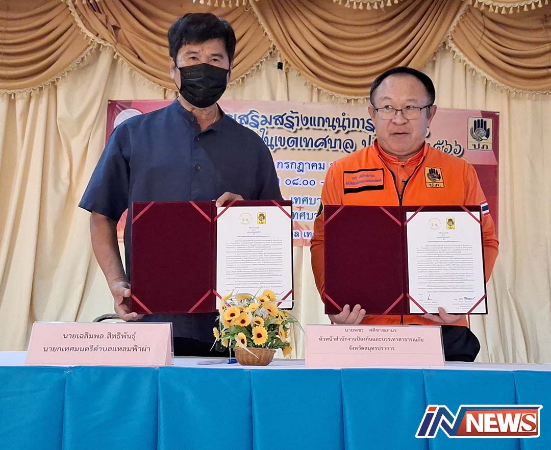สมุทรปราการ-เทศบาลตำบลแหลมฟ้าผ่าจัดโครงการเสริมสร้างแกนนำการป้องกันและระงับอัคคีภัยในเขตเทศบาล ประจำปี 2566