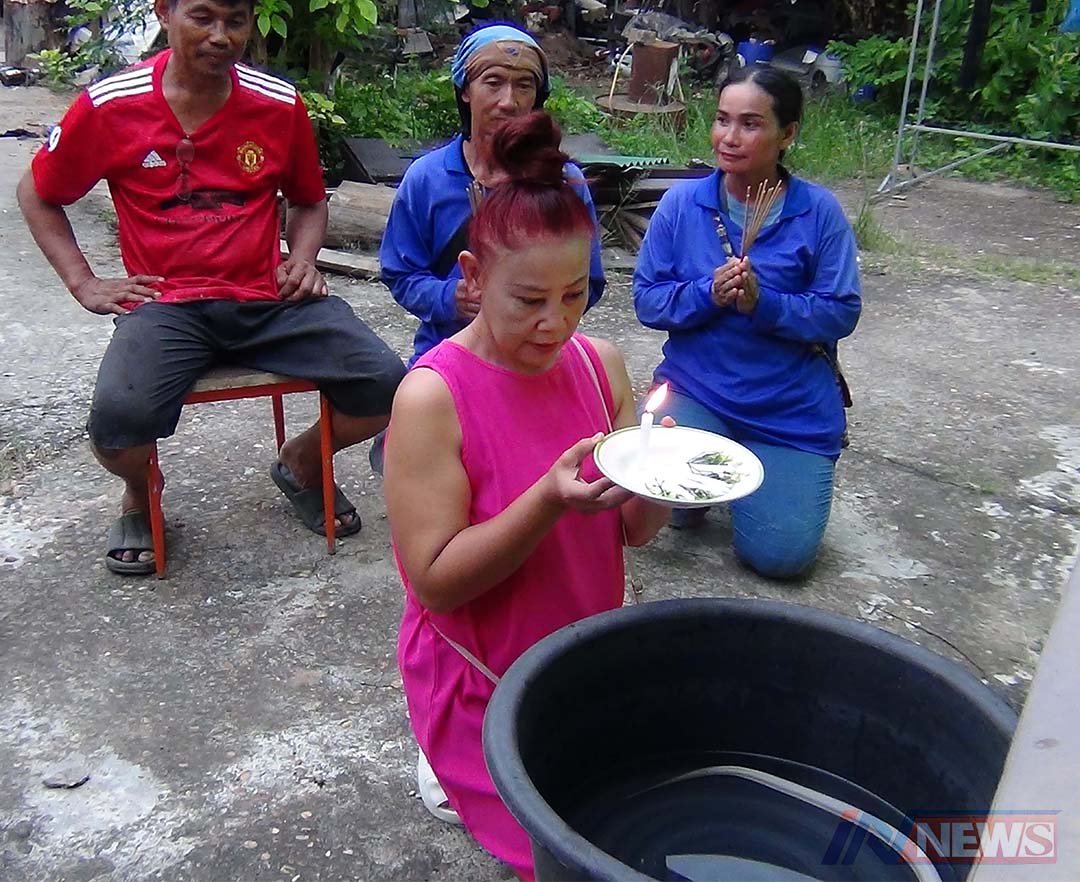 มุกดาหาร-ชาวบ้านตื่นปลาไหลเผือก จัดขันธ์ 5 จุดธูปเทียนเพื่อขอโชคลาภ เนื่องจากให้โชคมาแล้วหลายงวดหวยไทยและหวยลาว&nb...