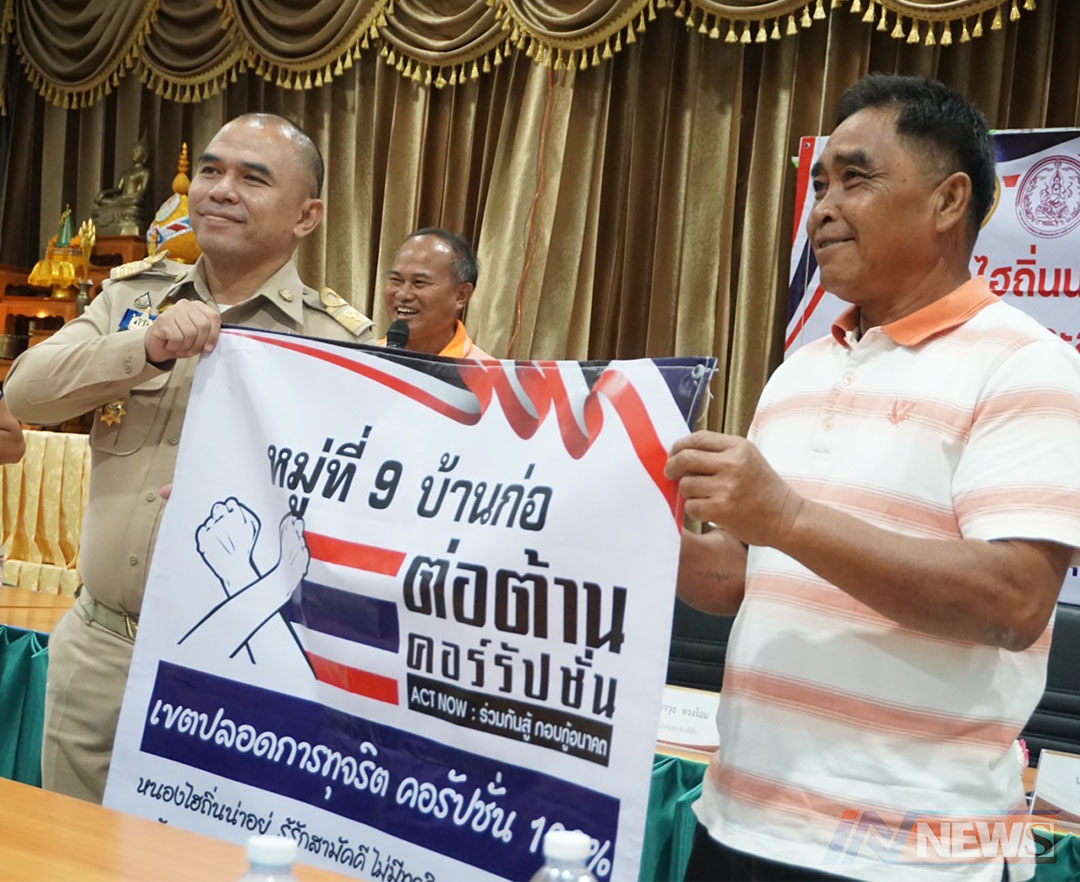 นอภ.อุทุมพรฯมอบป้ายป้องกันการทุจริต ให้กับหมู่บ้านในตำบลหนองไฮ