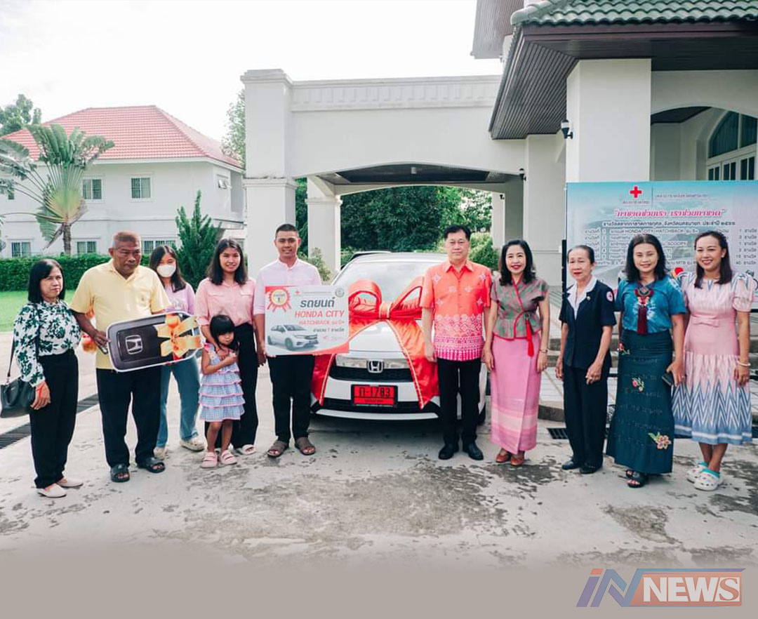 นครนายก - มอบรางวัลผู้โชคดีถูกรางวัล ที่ 1 สลากกาชาดจังหวัด ประจำปี 2566 ได้รถยนต์ Honda City Hatchback จำนวน 1 รางวัล