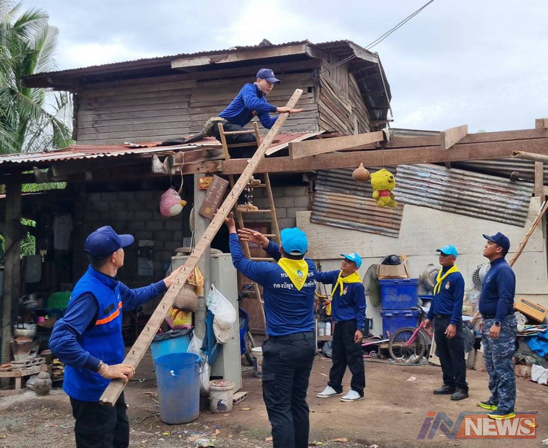 ทหารนพค.16 ช่วยเหลือรื้อถอนเศษวัสดุ ขนย้ายสิ่งของซ่อมแซมบ้านเรือนปชช.