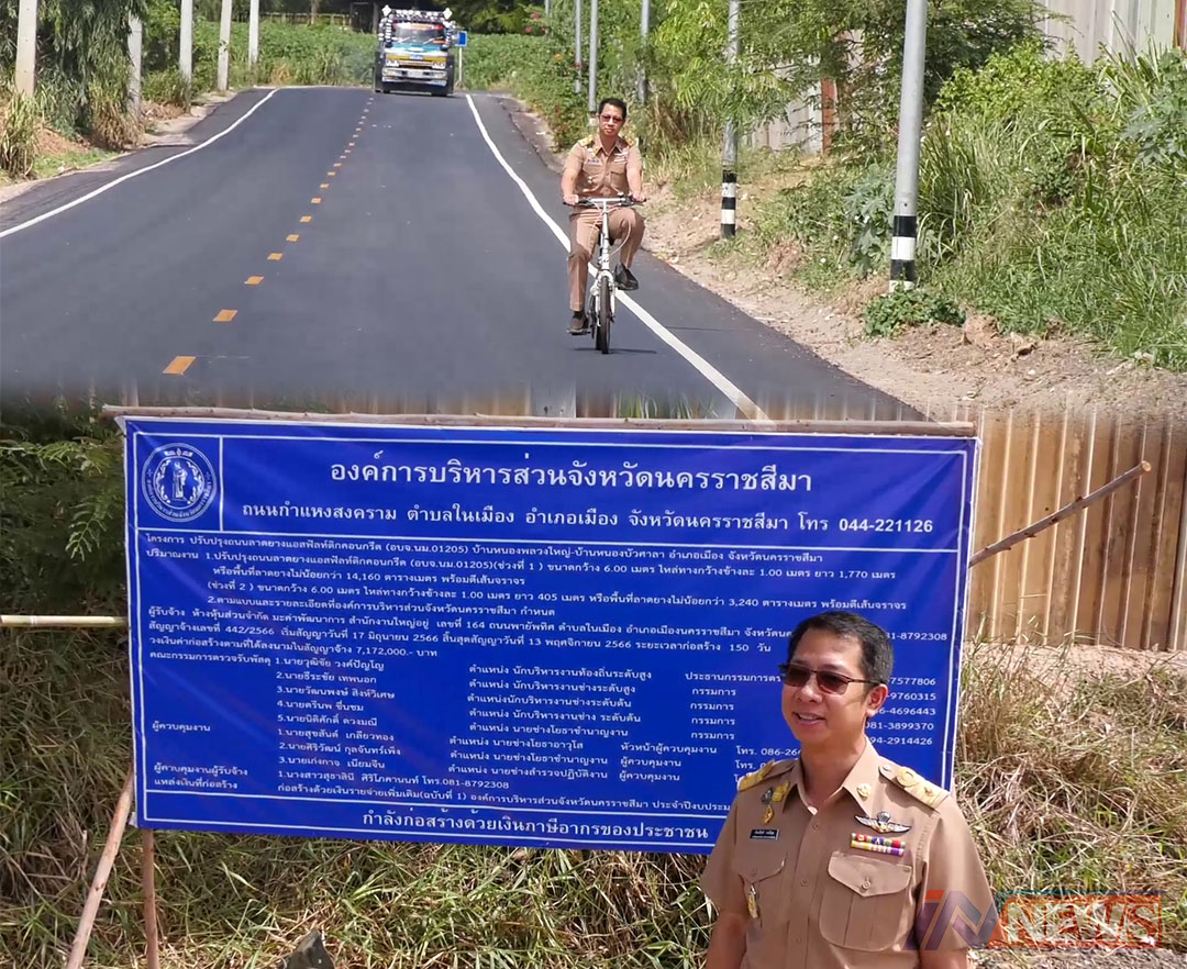 สีสันวันนี้'สจ.เขต1โคราช'ปั่นจักรยานคู่ใจ ดูถนนลาดยางแอสฟัลท์ติกฯงบฯ7ล้าน