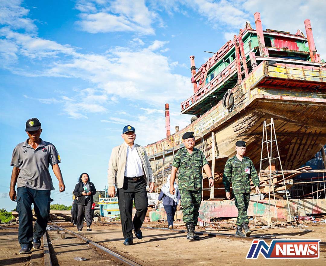 สงขลา-เลขาฯ ศอ.บต. ลงพื้นที่ ติดตามความคืบหน้าการทำลายเรือประมง ภายใต้โครงการนำเรือประมงออกนอกระบบฯ จ.ปัตตานี พร้อ...