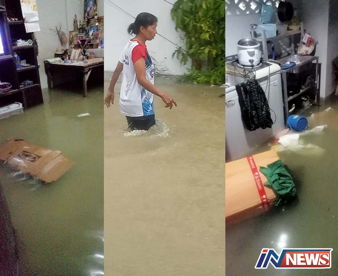 ฝนตกหนักน้ำป่าไหลท่วมบ้านเรือนประชาชน13หลังคา